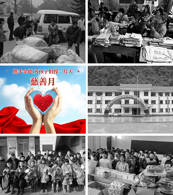 汶川人民的遭遇牽動著每一個金德人的心,地震發生后,金德管業集團不但第一時間為災區捐獻200萬元善款,而且為在地震中遭到重創的資陽市南津鎮中心小學捐獻135萬元,用以校舍重建。在金德管業集團和社會各界人士的熱心援助下,南津鎮中心小學不久就恢復了正常的教學活動,孩子們也得以重返校園。